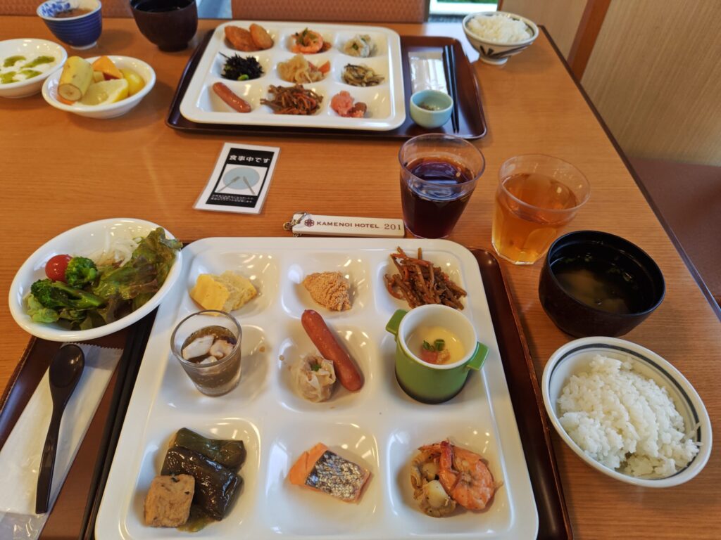 朝食はブュッフェスタイル。品数多くて食べきれない😅お風呂は貸し切りだったし、平日に泊まったのでお客さん少ないのかと思ったら、みんな早風呂だったみたいで、結構宿泊客いましたー☺朝風呂も混雑してましたよ~😊