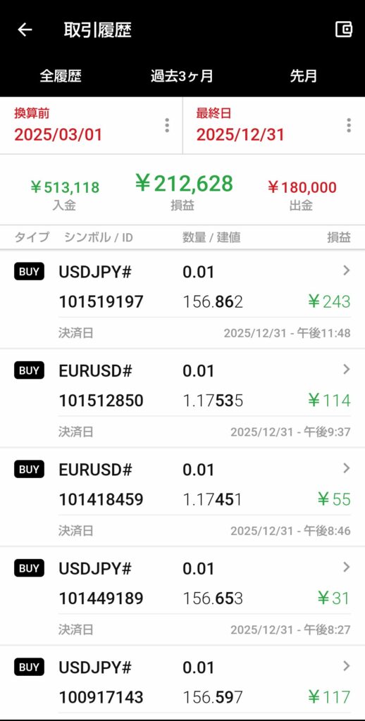 他の口座からの余ったお金を入金していますので、入金額が細かいです😅入金額を出金額が上回れるように頑張りたいのですが、いかんせんユロ円が最高値をいっており含み損が多くなっております😅